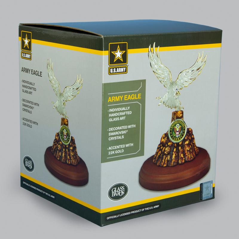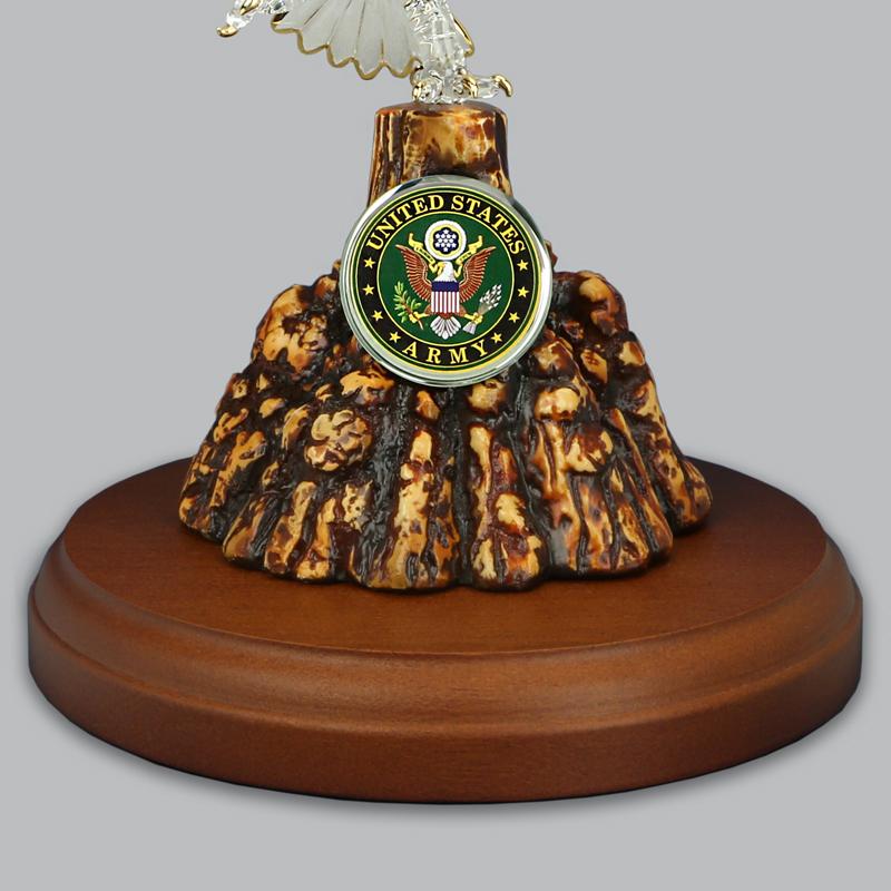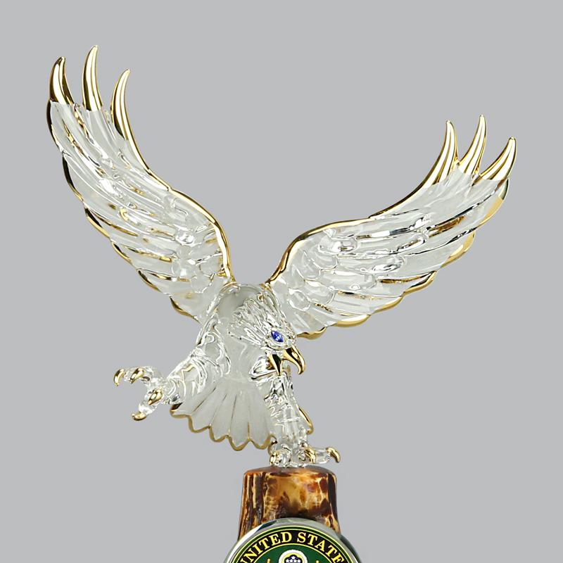 • Handcrafted glass eagle mounted on a solid walnut wood base.